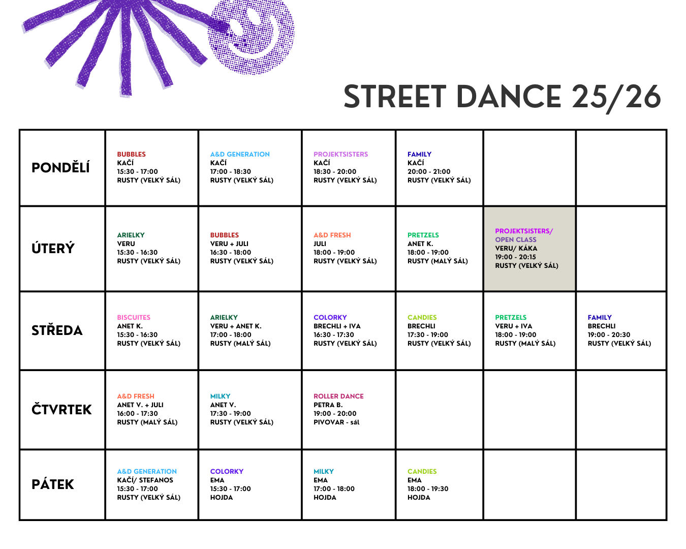 Rozvrh Street dance